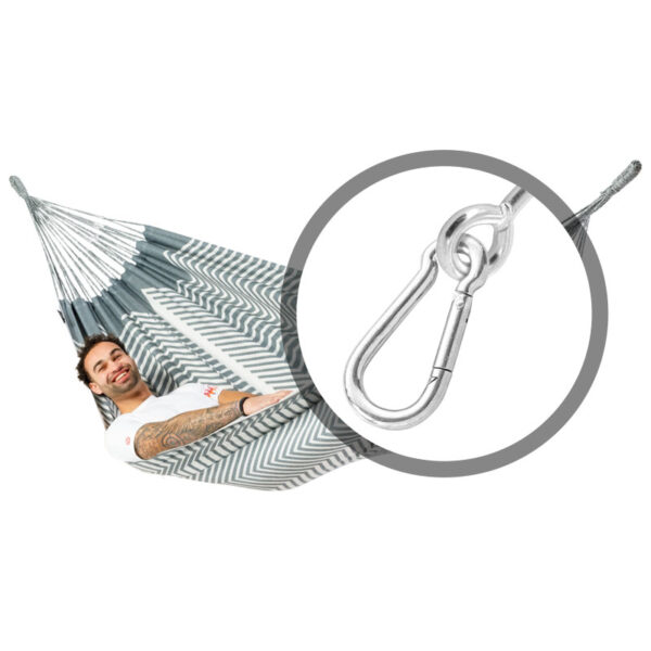 Combined with the multifunctional hanging system for all hammocks. Easily attach your hammock to walls, ceilings, beams or trees. The hammock hanging kit contains everything you need to hang your hammock and is made of high-quality material.