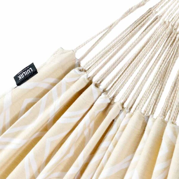 The Stars of Atlantis is ecru with white. Inspired by the stars of the lost city of Atlantis. This beautiful ecru hammock gives you the peace and space you need to dream away completely.