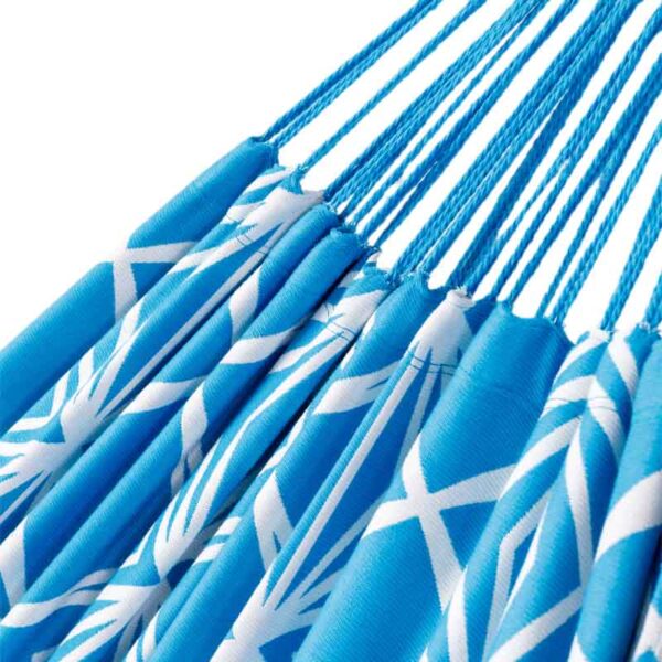 The Stars of Heaven are blue and white. Inspired by the stars of your own sky. This beautiful bright blue hammock gives you the peace and space you need to dream away completely.