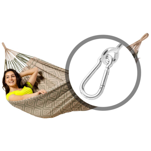Combined with the multifunctional hanging system for all hammocks. Easily attach your hammock to walls, ceilings, beams or trees. The hammock hanging kit contains everything you need to hang your hammock and is made of high-quality material.