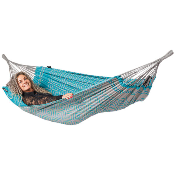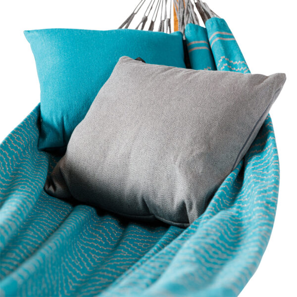 The Tones of Spirulina hammock is tone-on-tone blue-green, inspired by the rich hues of the microalga spirulina. The shade Harbour Blue evokes sheltered bays, salty sea breezes, and refreshing, cool waters. This beautiful hammock radiates an exceptional sense of clarity and calm.